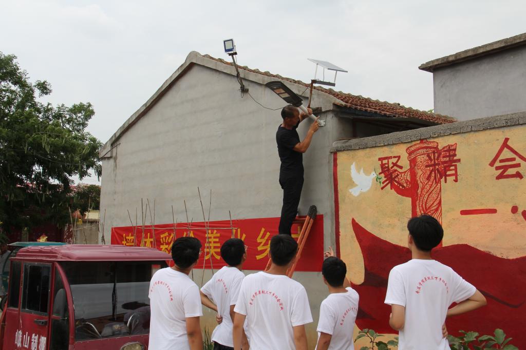 “光电”下乡专业先行,科技助力乡村振兴。学院依托理工学科背景优势开展科技下乡,充分利用专业知识科学助民。通过前期调研发现村庄部分地方没有路灯,团队利用LED灯板和太阳能电池板自制了10个太阳能节能灯,为村民们增添光亮,照亮乡村振兴的道路。随后开展家电维修,为村民维修故障电视机、电水壶、电风扇等多种家用电器,共同探讨故障原因,把设备元件损坏及更换情况进行了详细登记,获得了村民的一致认可与鼓励。同时还为村民科普宣传安全用电知识及科普宣传,通过展览讲解自制节能灯、机器人等历年国家级、省级比赛获奖科技实物作品,使孩子们对科技作品产生浓厚的兴趣,为孩子们埋下了科技兴国、科技报国的理念。