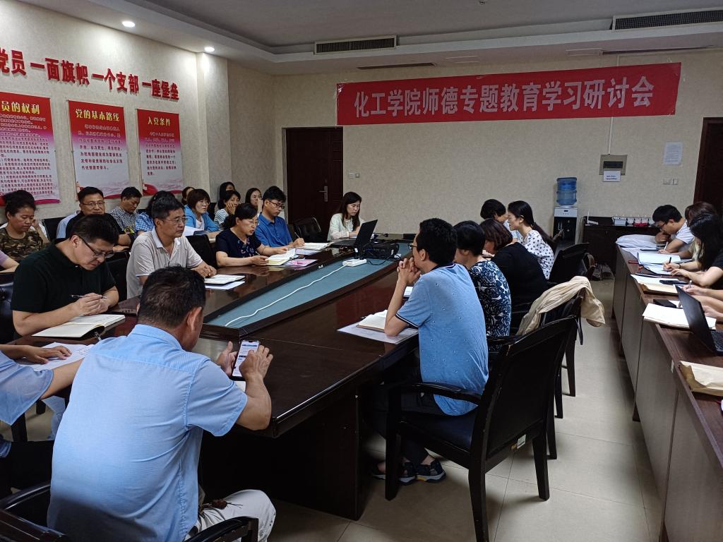 为进一步加强学院师德师风建设,认真落实立德树人根本任务,营造风清气正、崇德向善的育人环境,2021年7月7日,化学化工与材料科学学院在综合楼1220会议室召开师德专题教育学习研讨会在。会议由学院党总支副书记艾衍辉主持,学院全体教师参加了会议。