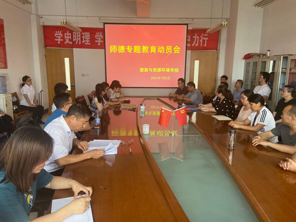 为加强师德师风建设,全面提升教师政治素养,7月2日下午,旅游与资源环境学院在理工楼2514会议室召开师德专题教育动员会。全体教师参加了会议,会议由党总支书记陆德国主持。