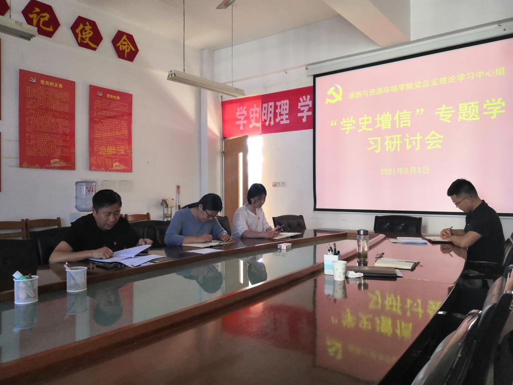 6月8日上午,旅游与资源环境学院党总支在理工楼2514会议室召开“学史增信”专题研讨会,党总支书记陆德国主持并交流发言,学院总支委全体委员参加了本次会议。
