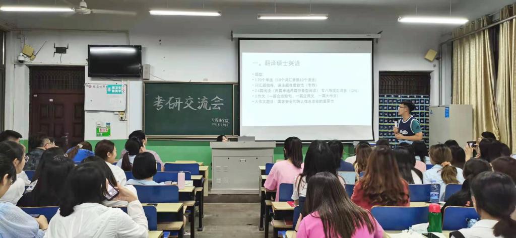 为进一步提高学生的考研热情,明确考研目标,掌握相关考研技巧, 6月1日晚,外国语学院在文科楼201教室举办考研经验交流会,本次交流会由外国语学院学生会主办。学院党总支副书记黄成亮、副院长孙显云出席了交流会,外国语学院2020级升本班学生和2018级部分同学参加了此次交流会。