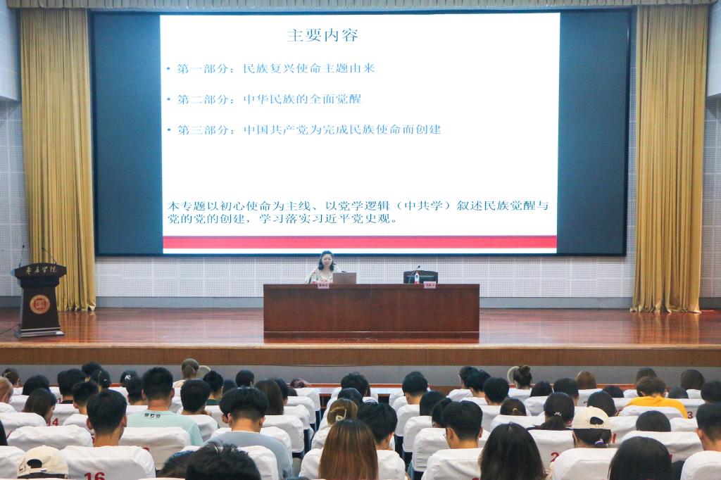 报告会上,董嫱嫱以《从伟大觉醒到开天辟地》为题,以中国共产党的初心使命为主线,从民族复兴使命主题的由来、中华民族的全面觉醒和中国共产党为完成民族复兴使命而创建三个部分,讲述了民族觉醒与党的创建过程,重点阐释新文化运动和五四运动如何唤醒一代青年,指引他们在比较和追求中选择了马克思主义,又在推动马克思主义在中国的广泛传播及其与中国工人运动相结合的实践运动中,酝酿、筹备、建立了中国共产党。报告通过大量图片资料和生动案例呈现了中国先进知识分子和中国人民如何经过五四运动的洗礼从根本上改造中国,从而铸就了中国历史上开天辟地的大事件。