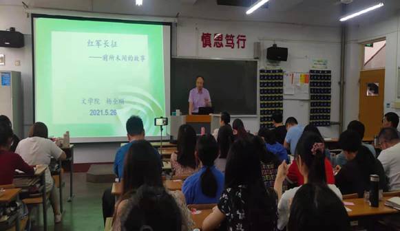 为加强党史学习教育,传承红色精神,5月26日下午,文学院在文科楼317教室开展了以“红军长征——前所未闻的故事”为题的党史学习教育专题党课。党课由文学院党总支书记宋建修主持,文学院副院长杨全顺主讲,全体师生党员聆听了此次党课。