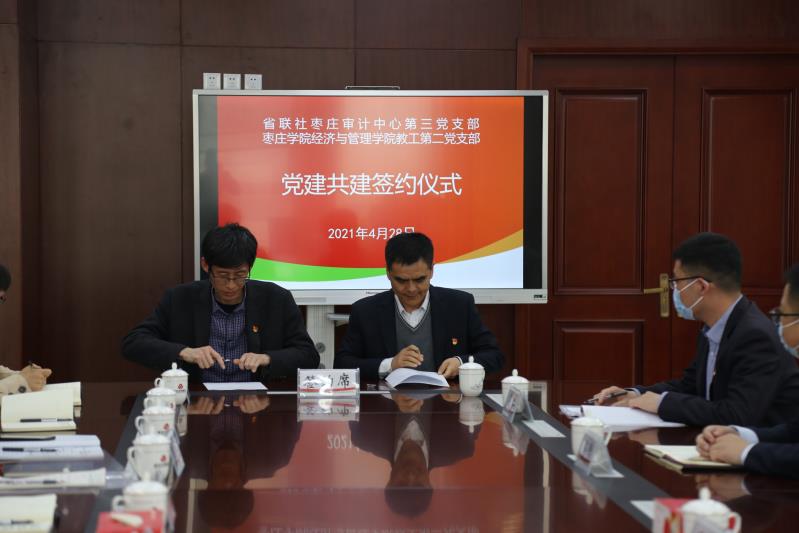 经济与管理学院教工第二党支部书记杨位留与省联社枣庄审计中心第三党支部书记高崇亮签订了《党建共建协议书》。签约仪式后,共建党支部进行“党史学习教育”集中学习,党员共同观看视频《百炼成钢—向北平出发》。