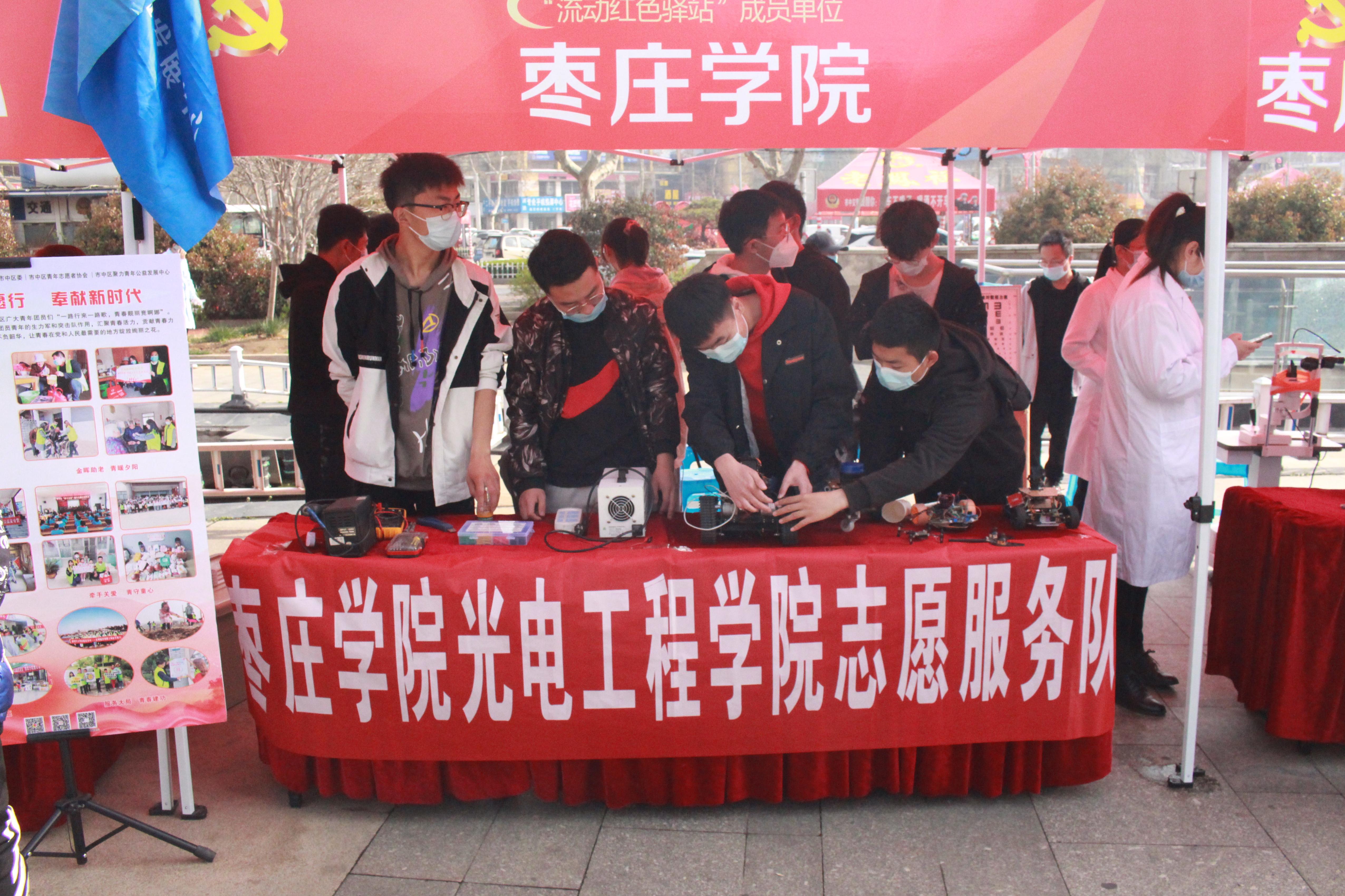 3月28日,由枣庄市市中区委组织部主办的“市中区流动红色驿站为民服务活动”在中央广场举行,光电工程学院代表香港全年最全免费资料大全与市中区司法局、人社局、住建局等多个单位一起在广场集中开展“组团式”志愿服务。