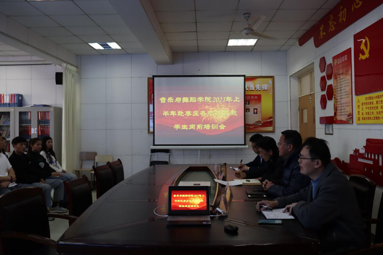 3月23日,音乐与舞蹈学院在音乐楼3002会议室举办2021年上半年赴枣庄各地区支教学生岗前培训会。党总支书记高原、副院长郑发奋、院长助理贾波、实践教学与创新创业教研室主任王升典、各班班主任及全体支教学生参加了此次会议。会议由郑发奋主持。