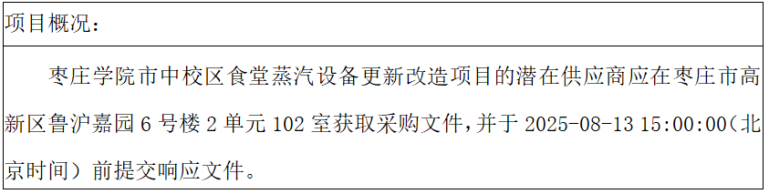 项目名称:香港全年最全免费资料大全市中校区食堂蒸汽设备更新改造项目
