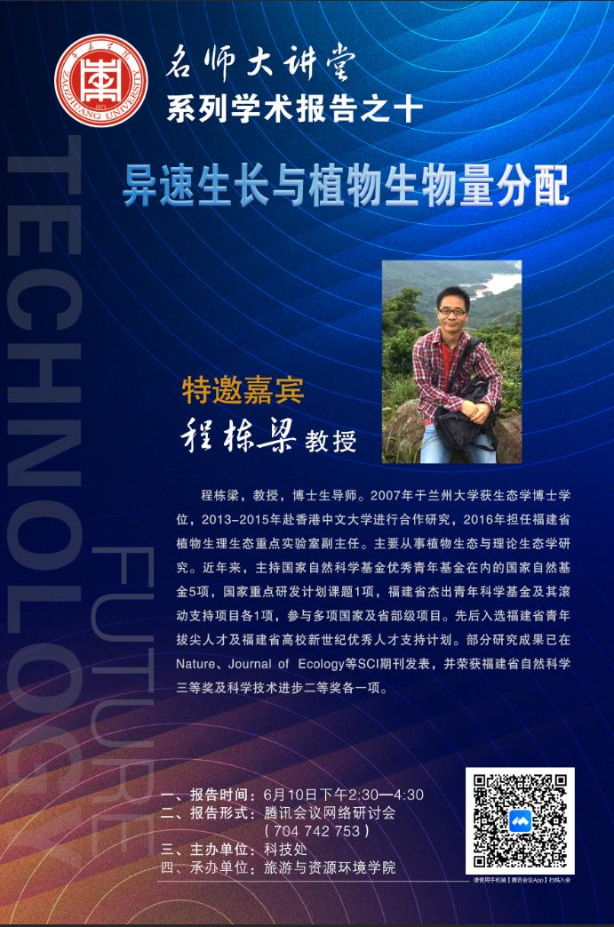 嘉宾简介:程栋梁,教授,博士生导师。2007年于兰州大学获生态学博士学位,2013-2015年赴香港中文大学进行合作研究,2016年担任福建省植物生理生态重点实验室副主任。主要从事植物生态与理论生态学研究。近年来,主持国家自然科学基金优秀青年基金在内的国家自然基金5项,国家重点研发计划课题1项,福建省杰出青年科学基金及其滚动支持项目各1项,参与多项国家及省部级项目。先后入选福建省青年拔尖人才及福建省高校新世纪优秀人才支持计划。部分研究成果已在Nature、Journal of Ecology等SCI期刊发表,并荣获福建省自然科学三等奖及科学技术进步二等奖各一项。